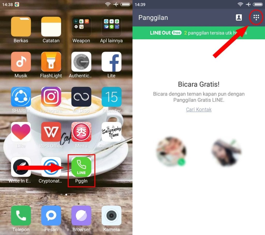 4. Sekarang klik pada icon LINE Out yang ada di beranda kamu, lalu pilih pada icon papan tombol yang ada di sebelah kanan atas.