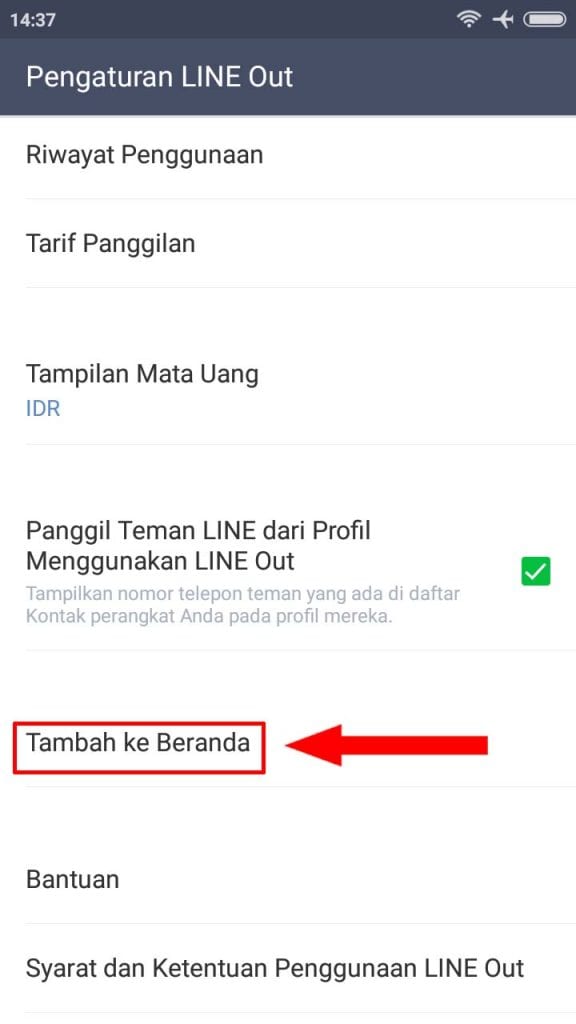 3. Lalu pada pengaturan LINE Out pilih Tambah ke beranda.