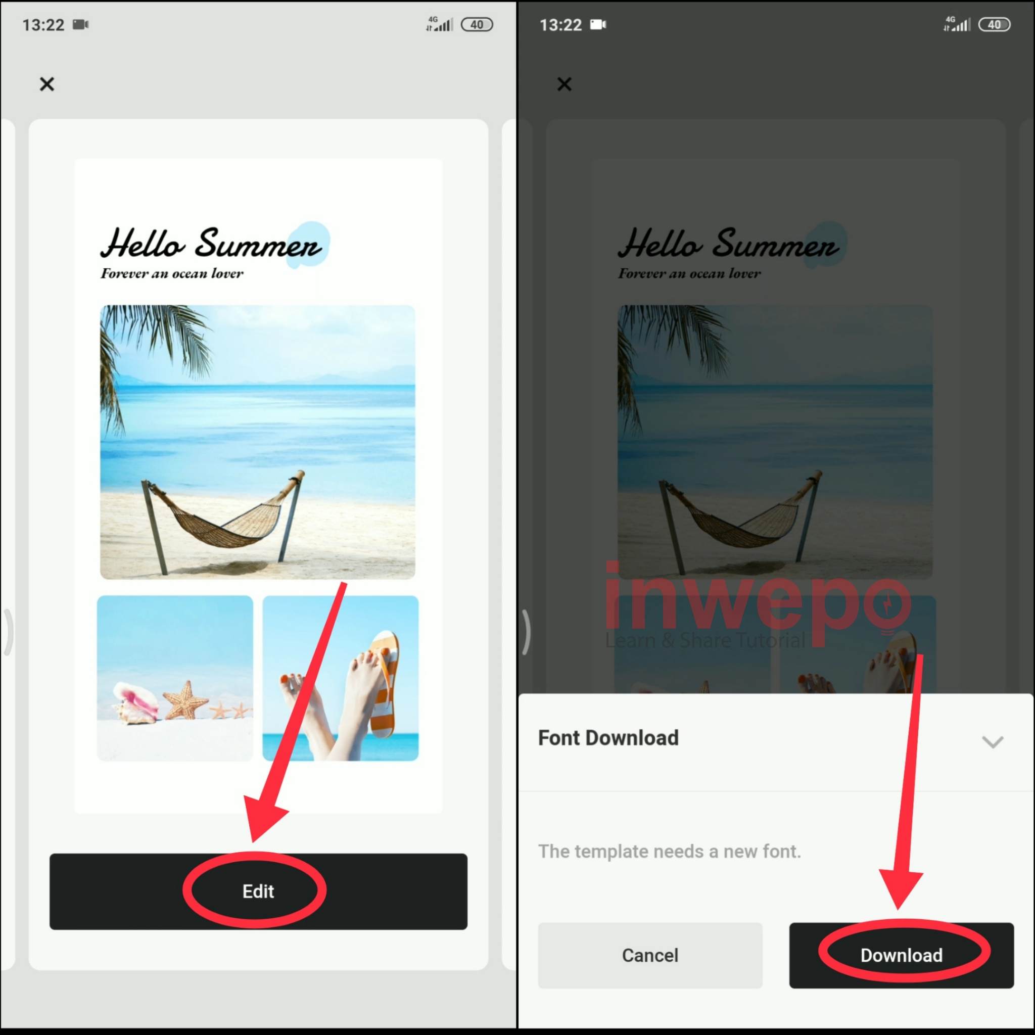 3. Langkah ketiga, tap menu edit kemudian kamu akan di arahkan untuk mendownload font tap langsung menu download.