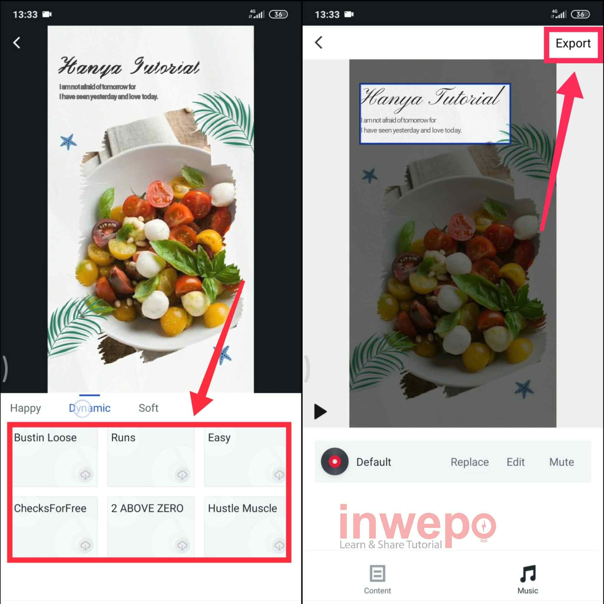 8. Langkah kedelapan, download music yang dibutuhkan. Jika sudah selesai semua tap menu Export.