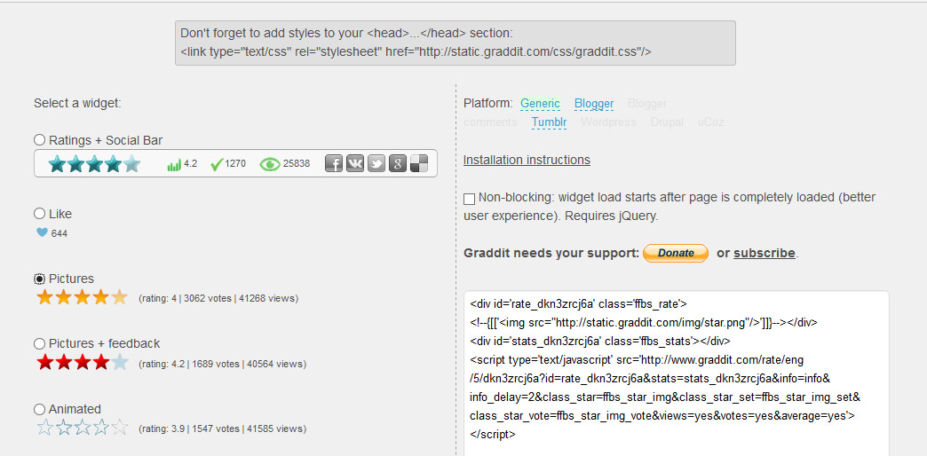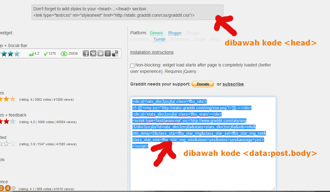 2. Lalu klik Star rating atau http://www.graddit.com/ratings-widget