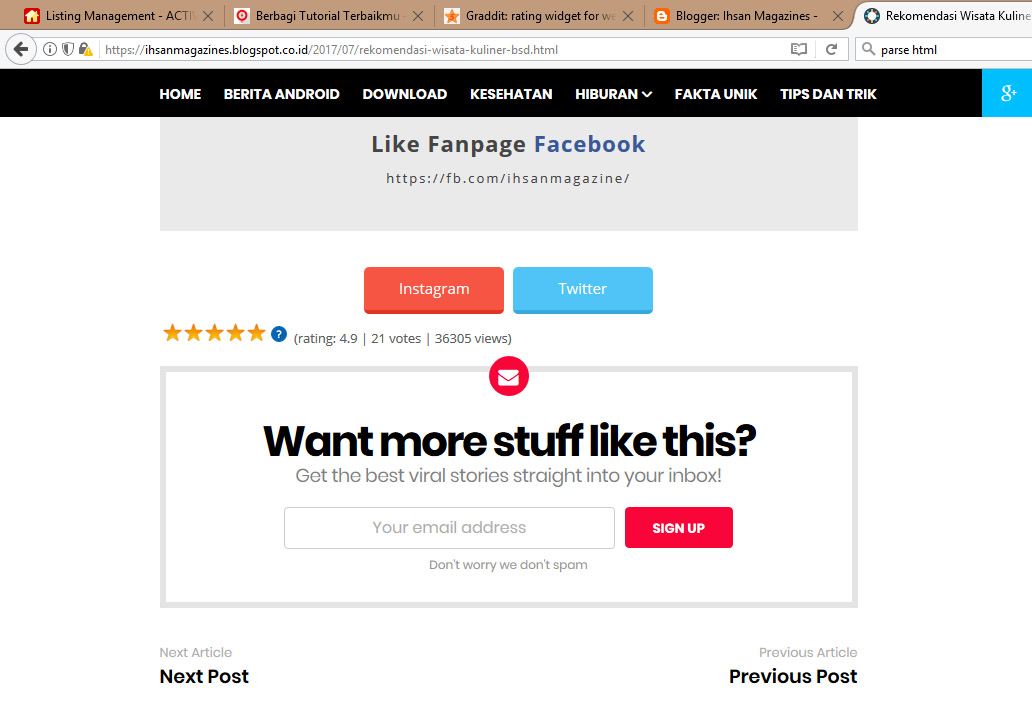 Banyak yang menyebarkan tutorial cara menambahkan fitur rating bintang 5 di blogpsot tetapi sayangnya kebanyakan cara-cara tersebut sudah tidak bisa digunakan atau tidak berfungsi lagi dan sudah tidak pernah di perbarui.