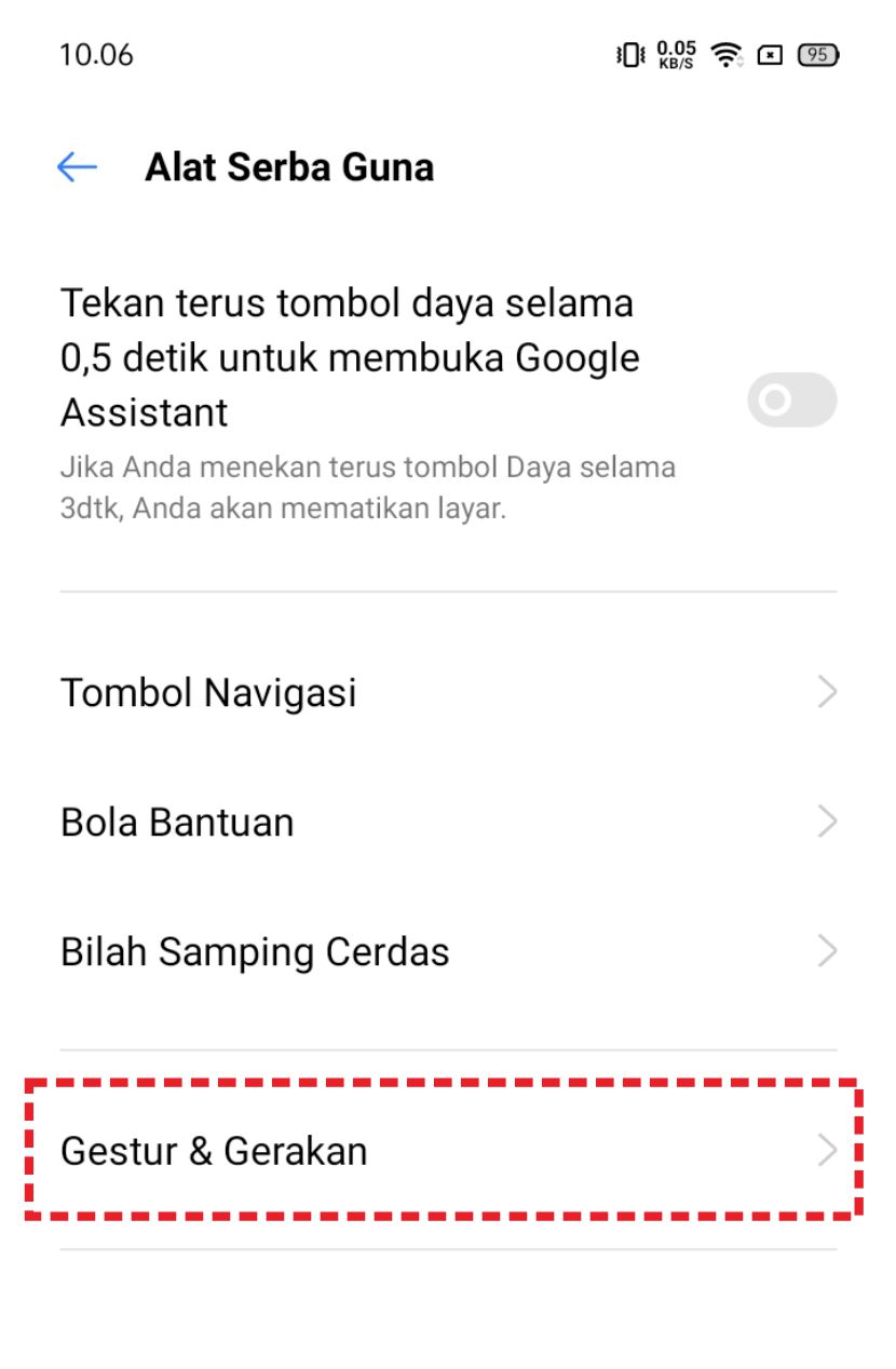 3. Pada tab menu Alat Serba Guna, plih menu “Gestur dan Gerakan”.