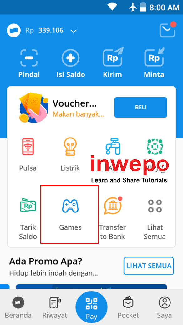 3. Setelah berhasil masuk ke halaman depan aplikasi, kamu pilih menu Games.