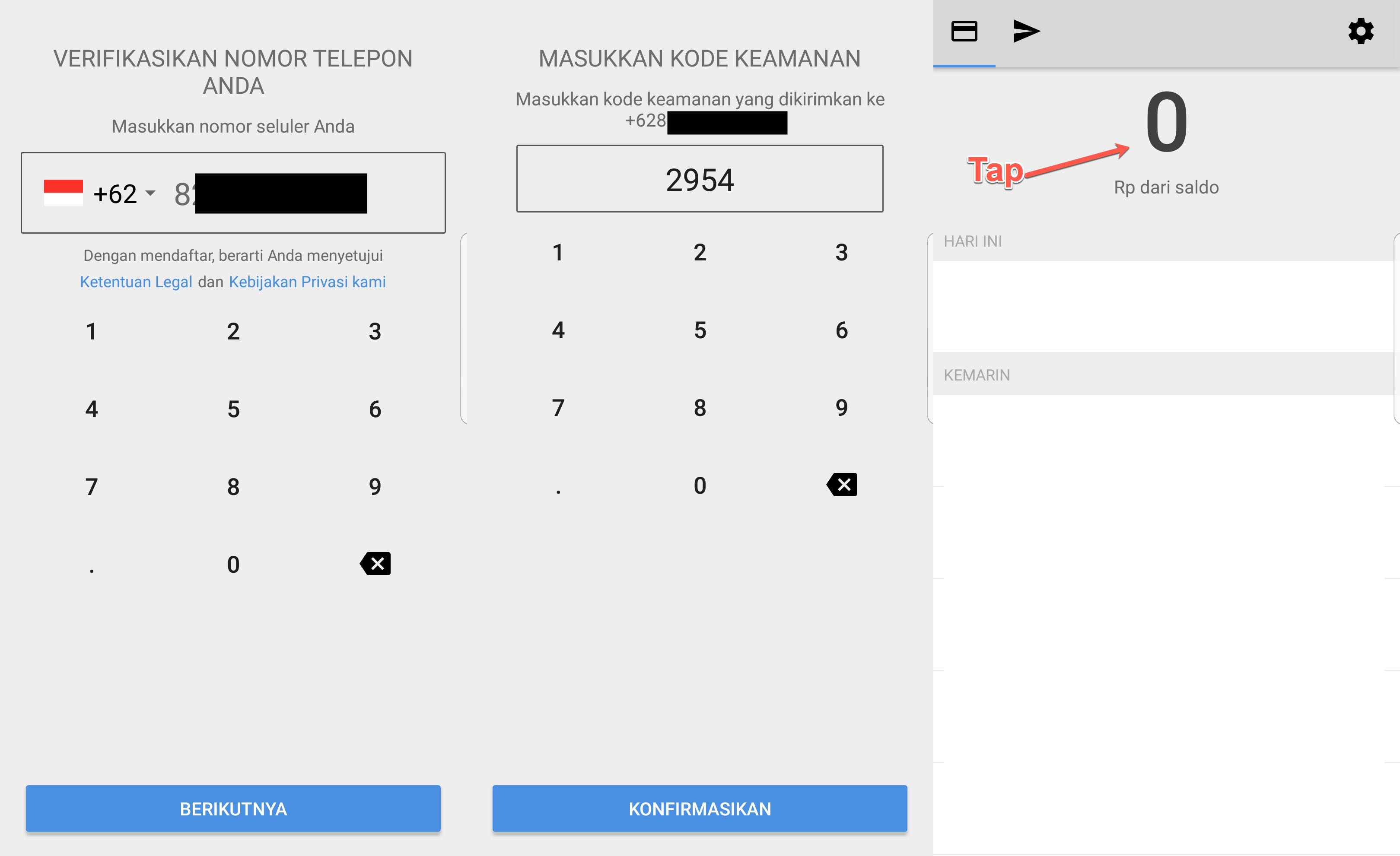 2. Selanjutnya daftarkan nomor telepon yang kamu gunakan untuk mengirim pulsa, masukan kode verifikasi yang akan dikirimkan melalui SMS.