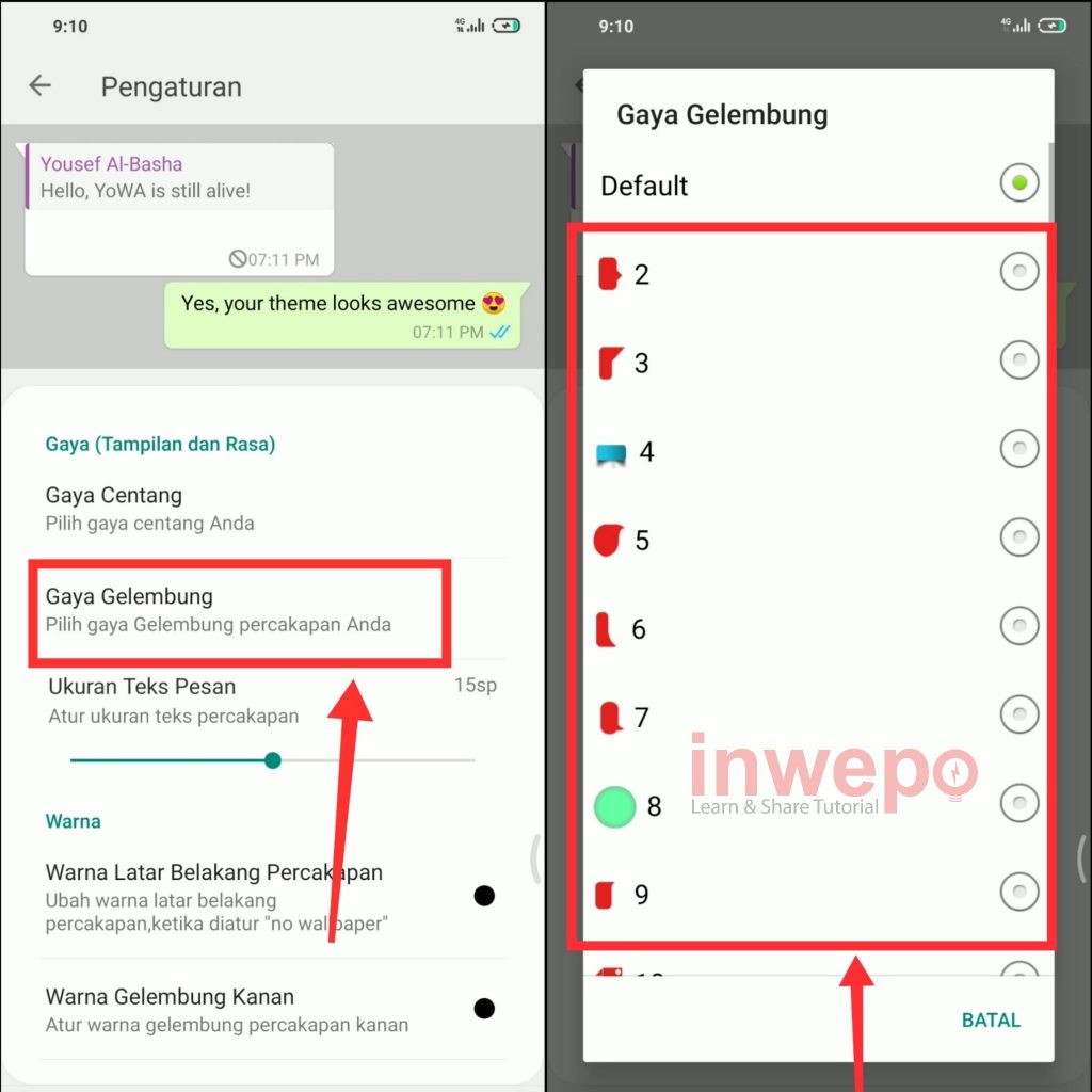 Mungkin banyak dari kita yang menginginkan perubahan bentuk pada gelembung percakapan tersebut, sayangnya pihak developer belum menghadirkan fitur tersebut. Tapi, jangan khawatir di kesempatan kali ini inwepo sudah siapkan cara dan triknya agar kalian bisa mengubah bentuk gelembung yang ada di WhatsApp kamu. Bagaimana caranya langsung saja ke langkah-langkahnya berikut ini.