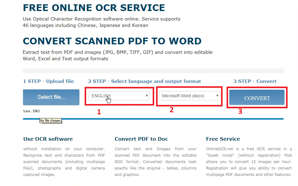 2. Lalu klik tombol Select File… untuk mengunggah gambar yang ingin kamu ubah menjadi teks.