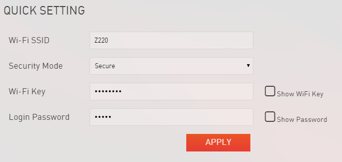6. Dan disana terdapat bagian bagian seperti Wi-Fi SSID , Security Mode, Wi-Fi Key, dan Login password.