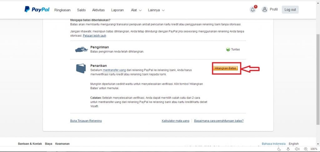 klik tombol “hilangkan batas” pada tulisan penarikan.
