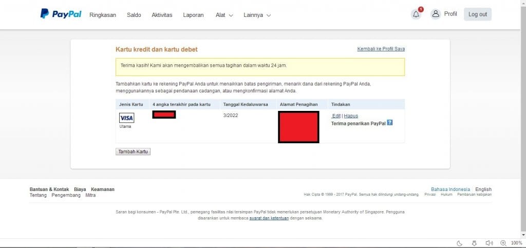 Dan selesai akun paypal kita telah berhasil verifikasi.