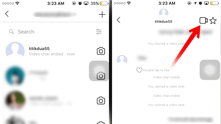 2. Pilih teman yang ingin kamu video call – tekan tanda ikon video di kanan atas (video call akan dimulai ketika orang yang ingin kamu video call, menerima panggilan video tersebut).