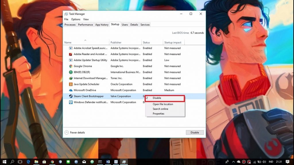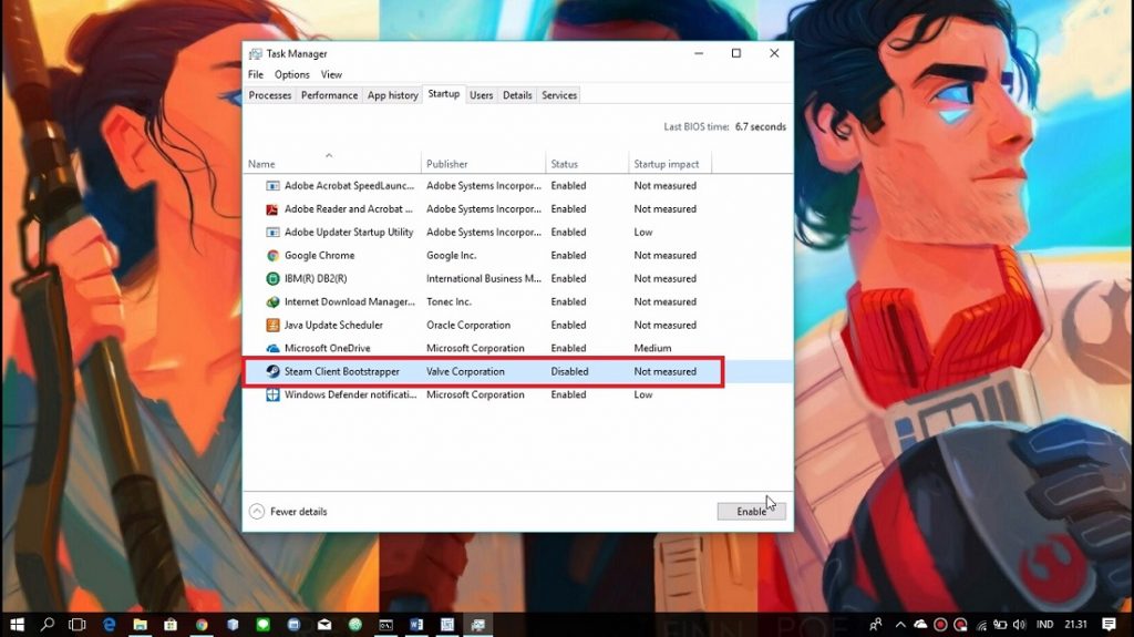 7. Disini terlihat bahwa status aplikasi steam sudah disable.