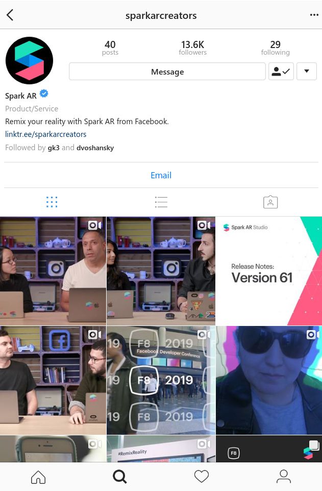 Akun SparkCreators merupakan proyek utama dari filter di Instagram ini, karena orang-orang yang berhasil membuat filter untuk Instagram sudah layak disebut Spart AR Creator, kamu bisa mencari para creator hanya dengan melihat pada followers akun ini.