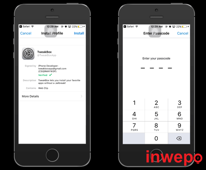 2. Tap Install – masukan passcode – Tap Install.