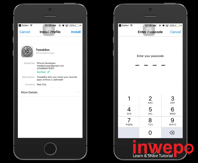 1. Buka browser Safari – kunjungi situs resmi Tweakbox di www.tweakboxapp.com – Tap download app.