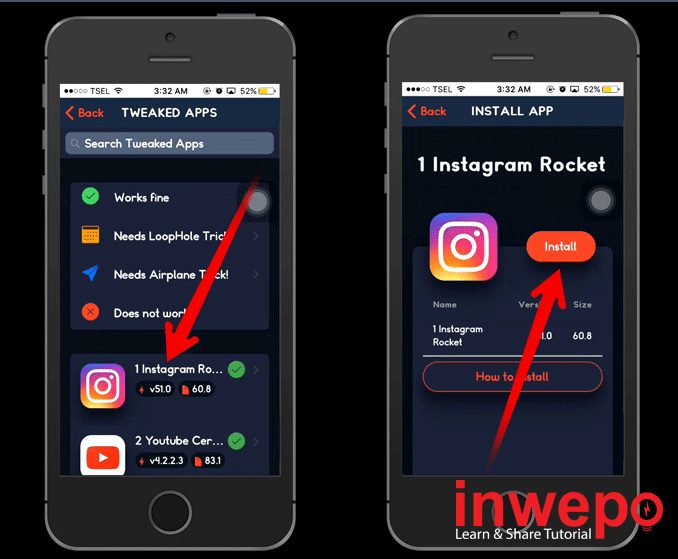 3. Buka aplikasi Tweakbox – pilih APPS – pilih Tweaked Apps.