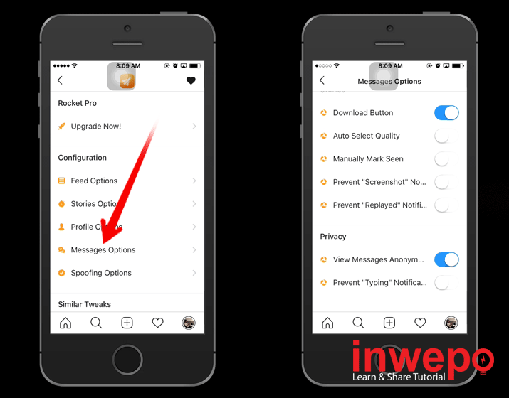 6. Tap Messages Option – Di menu Privacy – Aktifkan View Message Anonym...
