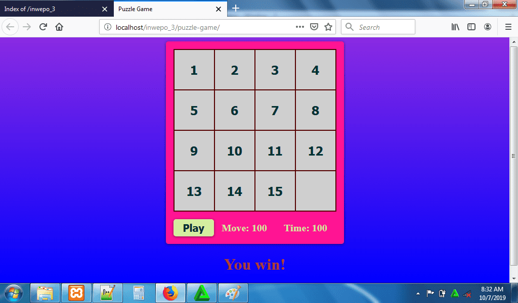 7. Reload http://localhost/puzzel-game.