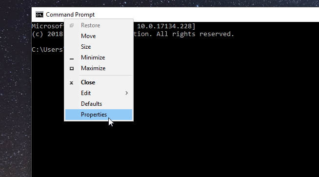 2. Selanjutnya, klik kanan pada bar CMD lalu pilih Properties.
