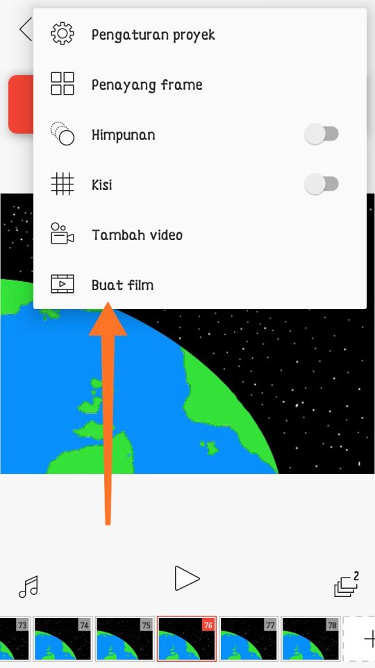 4. Ketika kamu ingin menyimpan hasil karyamu, Tap ikon pada pojok kanan layar – Tap Buat Film.