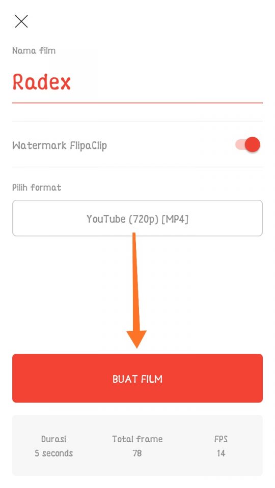 5. Beri nama dan pilih format animasi – Tap Buat Film – tunggu proses rendering sampai selesai.