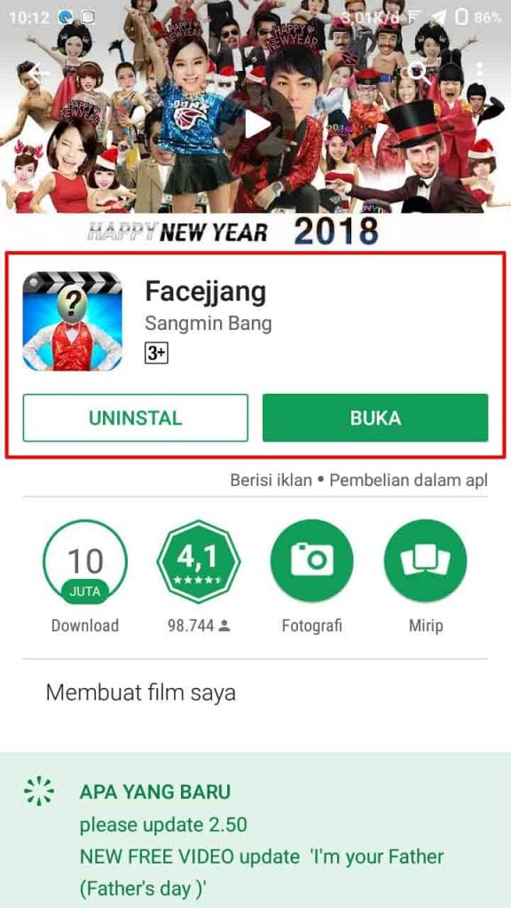 1. Download dan Install terlebih dahulu aplikasi Facejjang di Play Store.