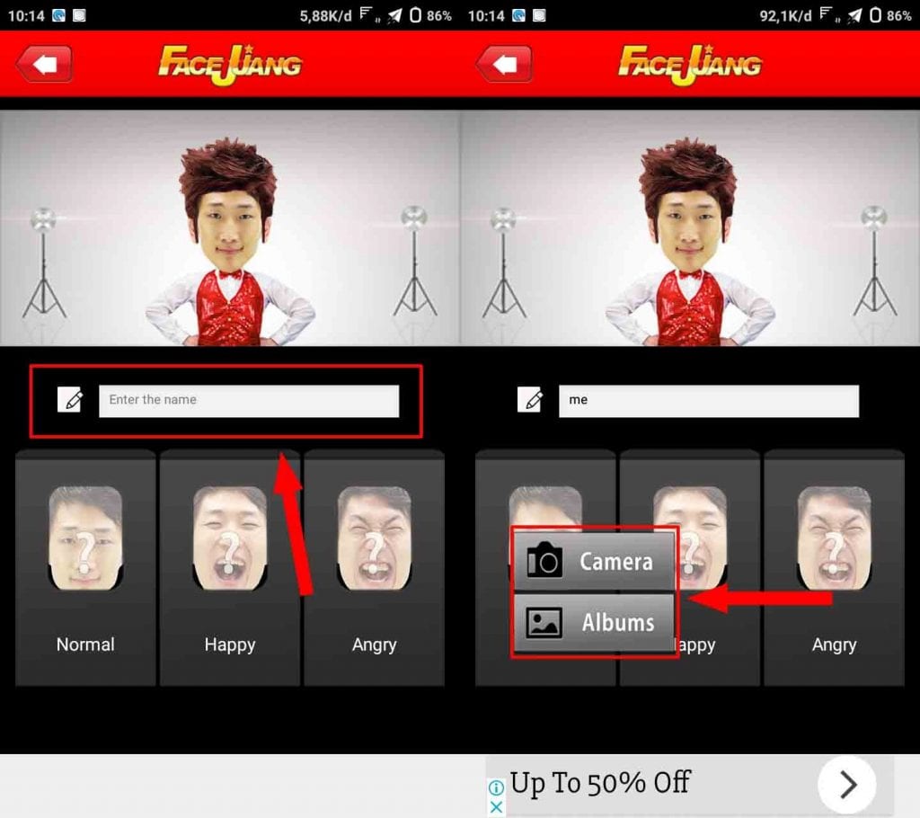 4. Berikan nama pada foto wajah yang akan kamu buat, tap Normal lalu tap Camera untuk memotret langsung melalui kamera atau pilih Albums untuk menambahkan photo wajah dari gallery HP kamu.