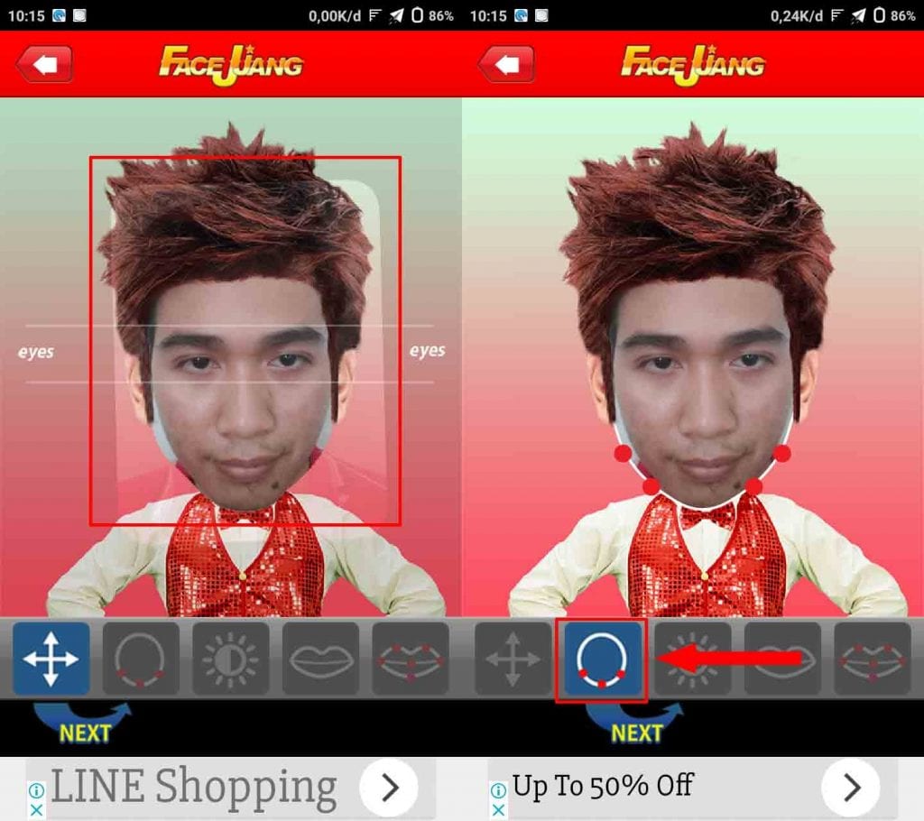 5. Cocokan dan atur wajah agar terlihat pas selanjutnya tap icon lingkaran untuk meluruskan dagu.