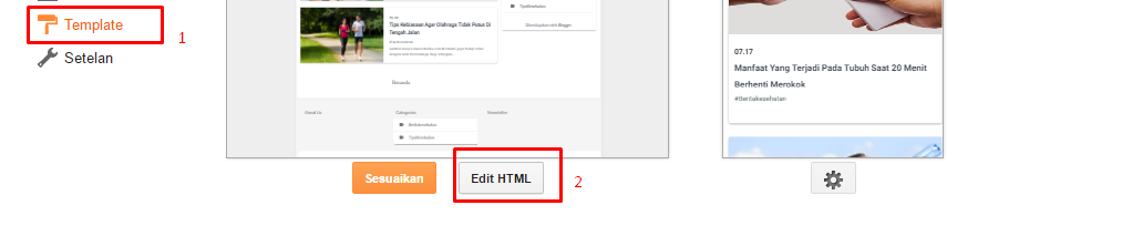 3. Langkah Ketiga : Buka Template – Edit Html.