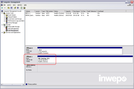 6. Perhatikan bahwa terdapat drive dengan nama “WD_Backup” tetapi tidak memiiki tanda huruf drive. Drive inilah yang nantinya perlu untuk kita tetapkan hurufnya.