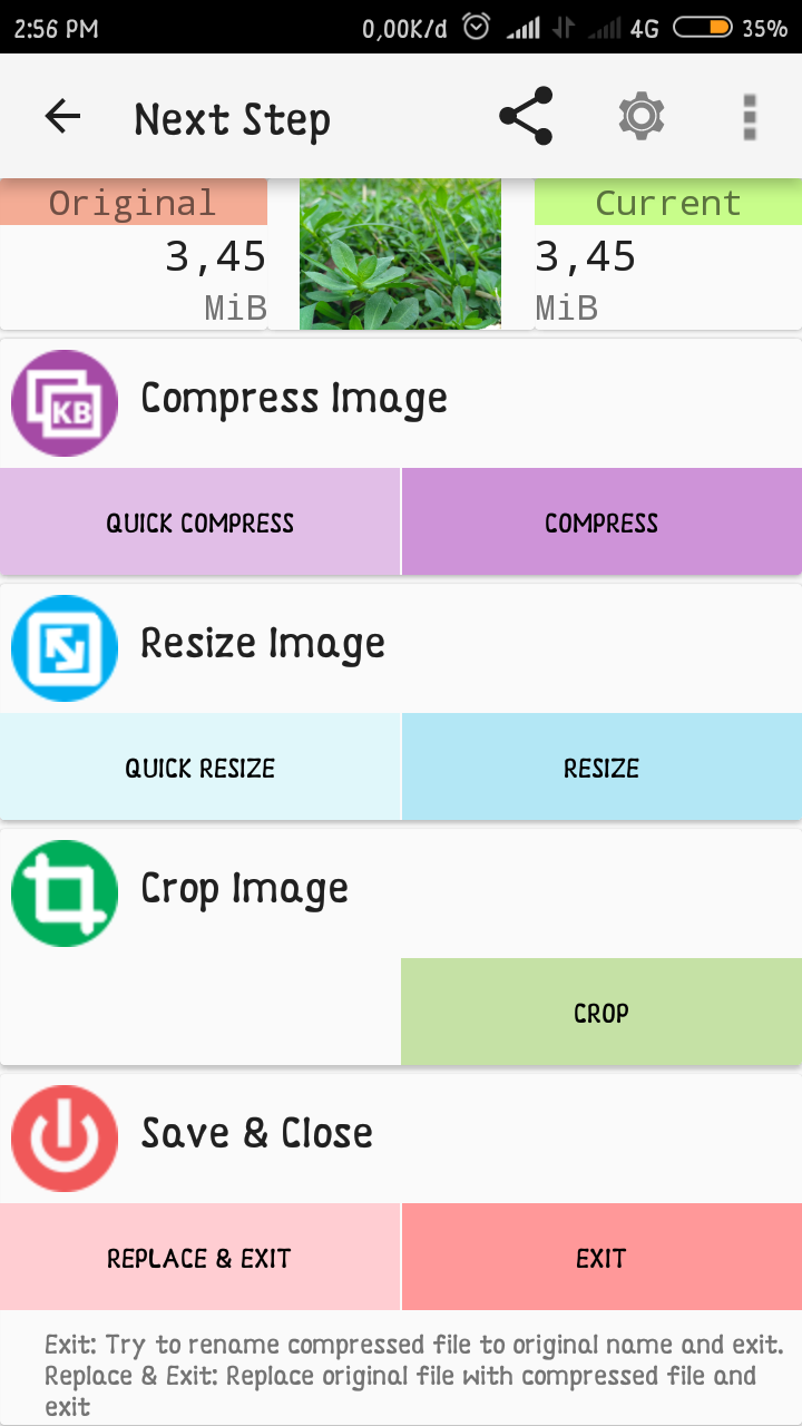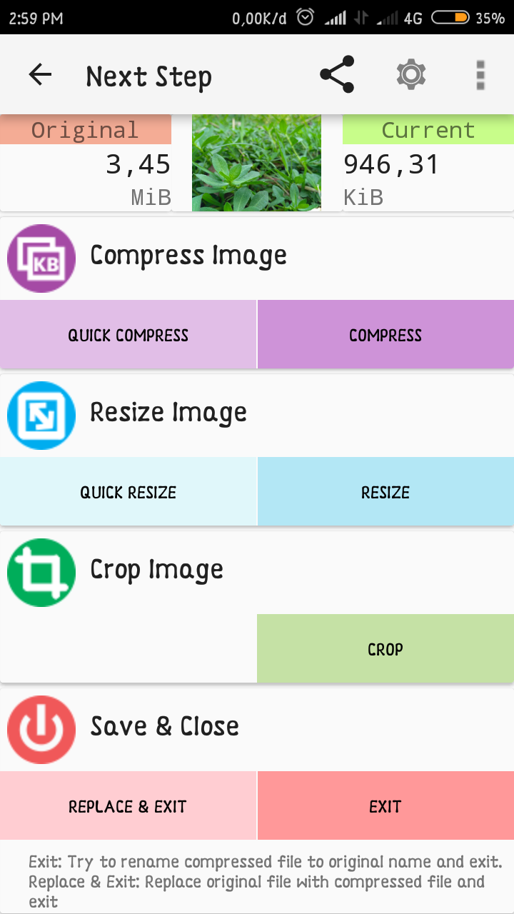 Semakin rendah pengaturan kualitas gambar semakin besar pula memori yang akan berkurang pada gambar – tap Compress jika sudah selesai melakukan pengaturan.