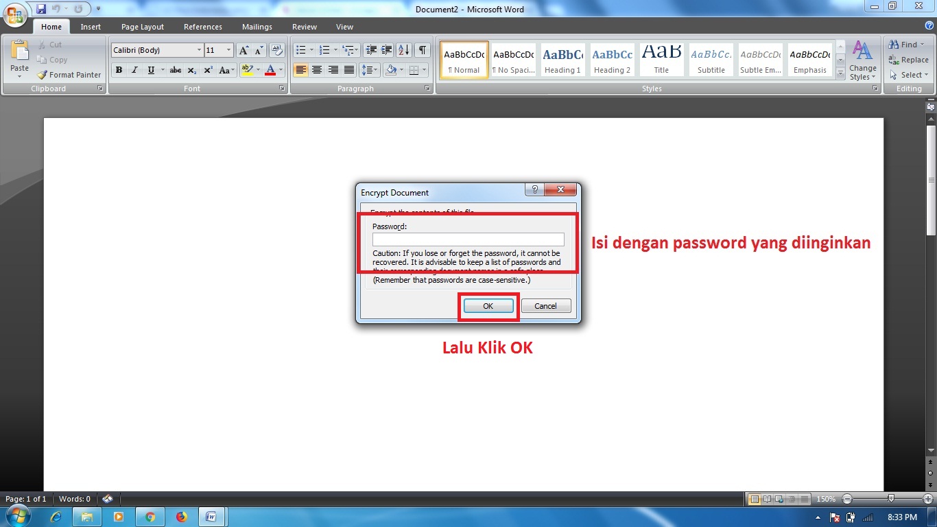 3. Setelah itu akan muncul jendela yang nantinya akan kita isi dengan password yang kita inginkan – setelah itu dilanjutkan dengan melakukan klik OK.