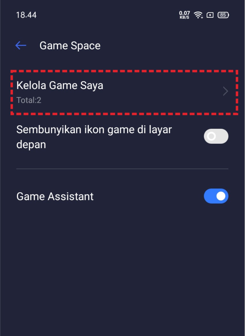 3. Jika sudah masuk ke menu pengaturan, gulir halaman ke bawah hingga muncul menu game space. Kemudian klik menu tersebut.