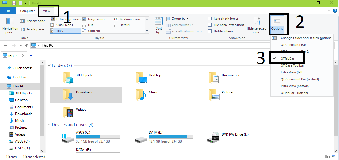 Fitur tab ini sangat berguna untuk manajemen file pada windows, dengan fitur tab ini kamu bisa membuka 2 atau lebih file explorer dalam satu window. Fitur ini memudahkan kamu misalnya untuk menyalin atau memindahkan file.