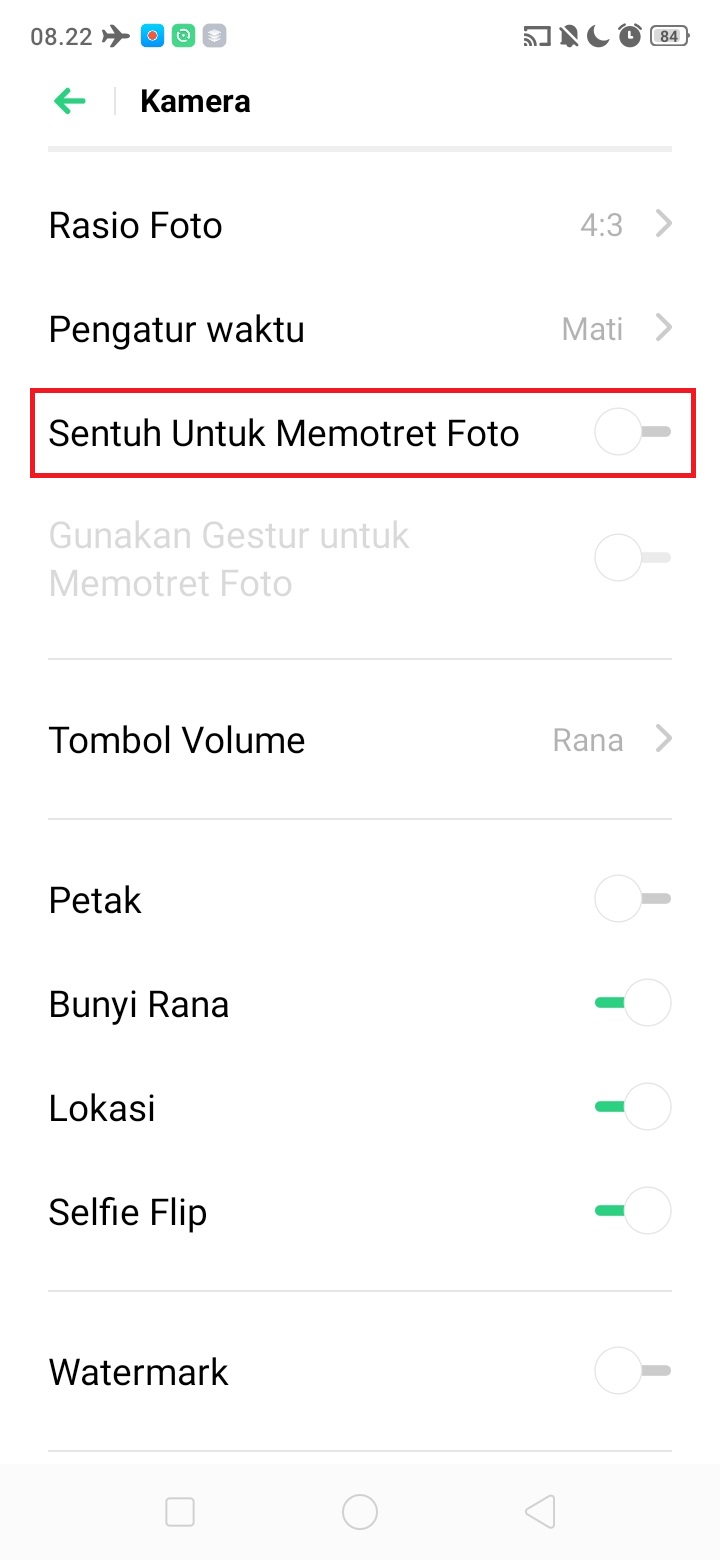 Aktifkan ‘Sentuh untuk Memotret Foto’.