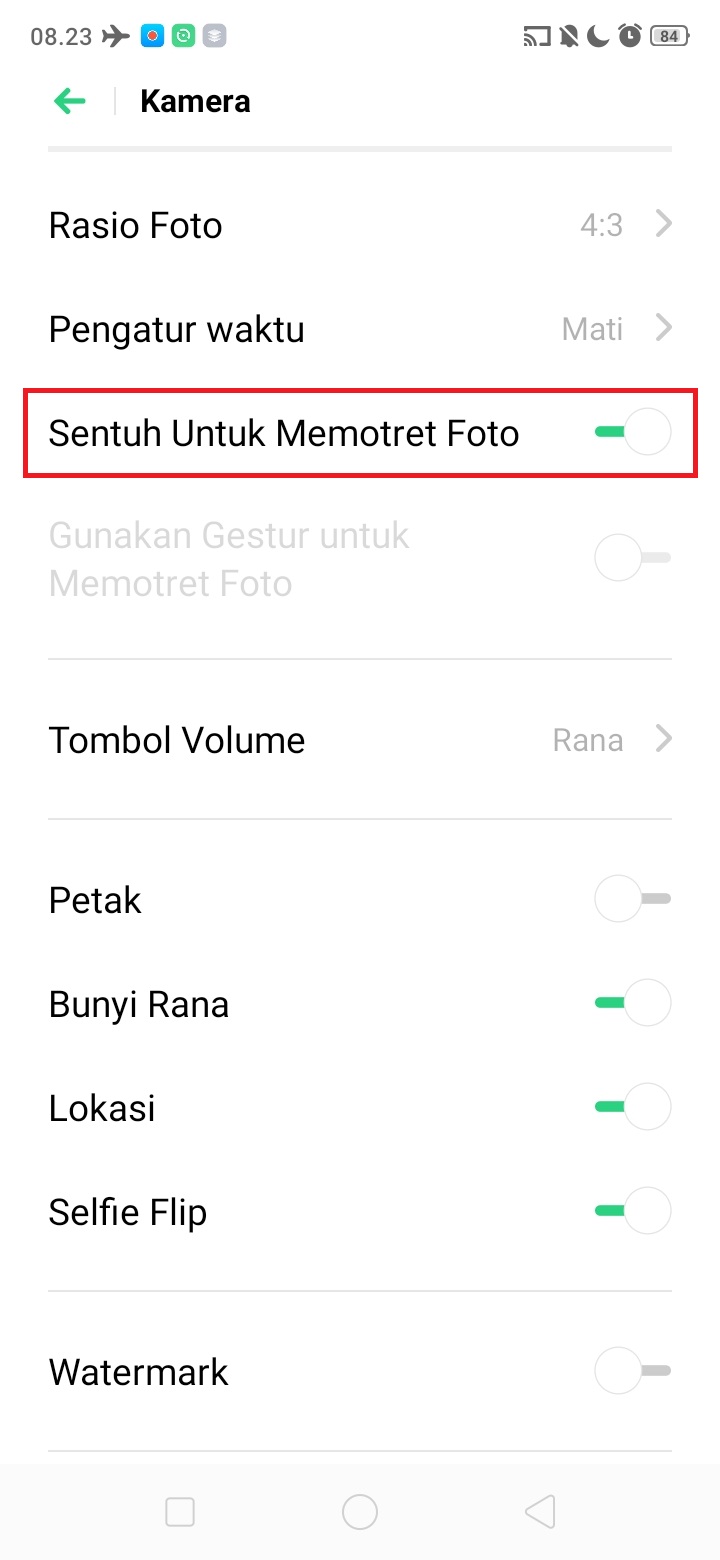 5. Sekarang fitur sentuh untuk memotret foto di HP Realme kamu sudah aktif, dan kini kamu bisa mengambil foto hanya dengan mengunakan satu sentuhan tanpa menyentuh tombol foto.