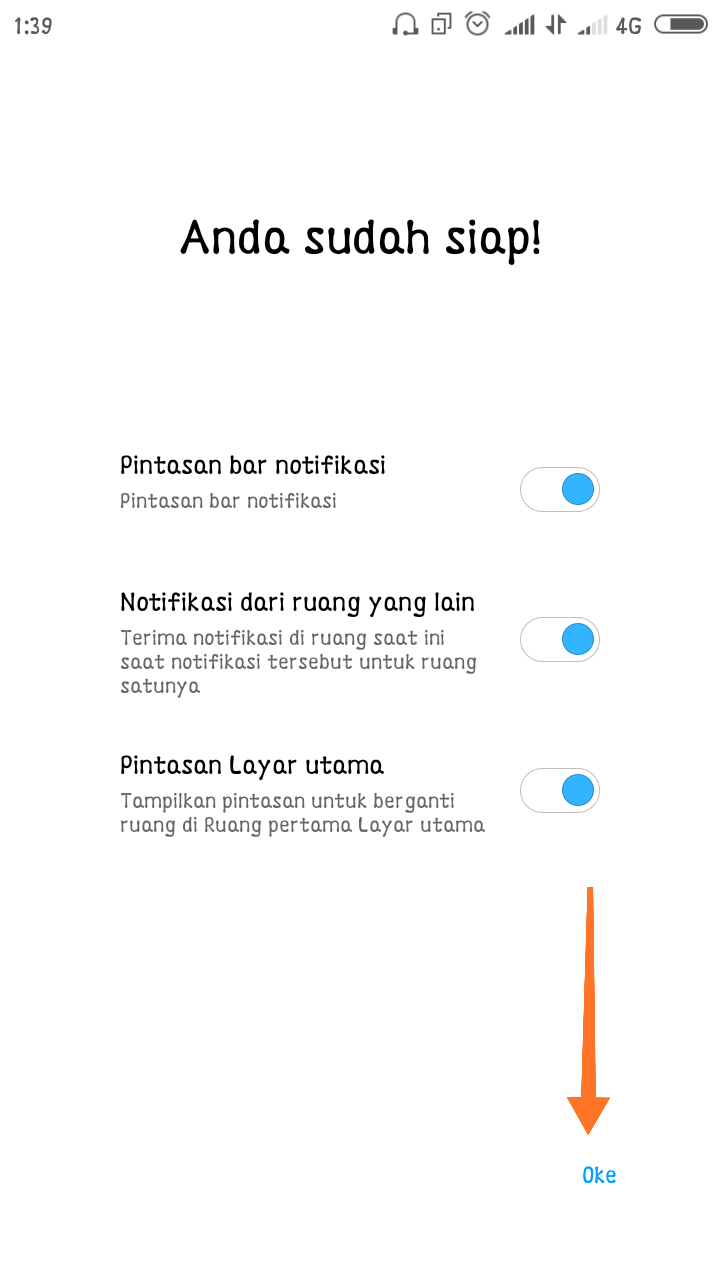 4. Setelah melewati penyetelan kata sandi, kamu akan melihat pilihan untuk mengatur notifikasi di ruang keduaĀ āĀ Tap oke jika kamu sudah menyelesaikan pengaturan.
