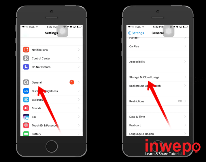 1. Pergi ke Settings – “General” – Storage & iCloud Usage.