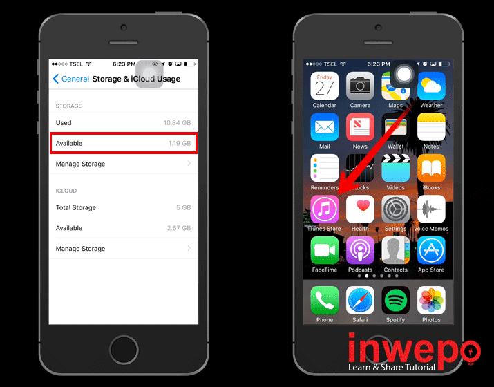 2. Cek Storage & iCloud Usage yang tersedia/Available – buka aplikasi iTunes Store.