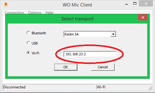 3. Kemudian samakan alamat IP WO MIC PC dengan yang ada di Android kamu – selanjutnya klik OK.