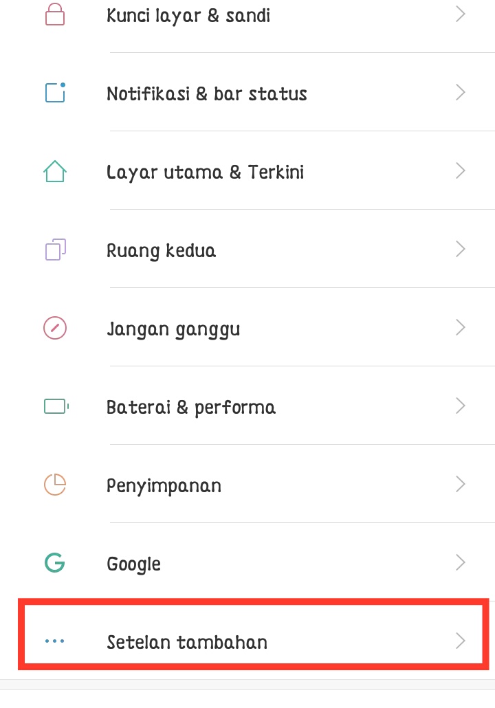 1. Masuk pada menu Pengaturan (setting) – Setelan tambahan (Additional settings).