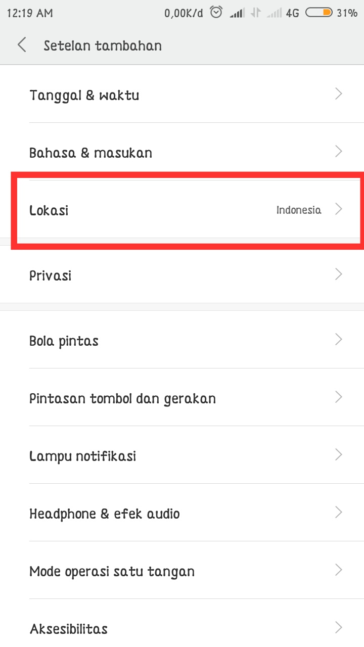 2. Selanjutnya, Tap pada bagian lokasi (region)