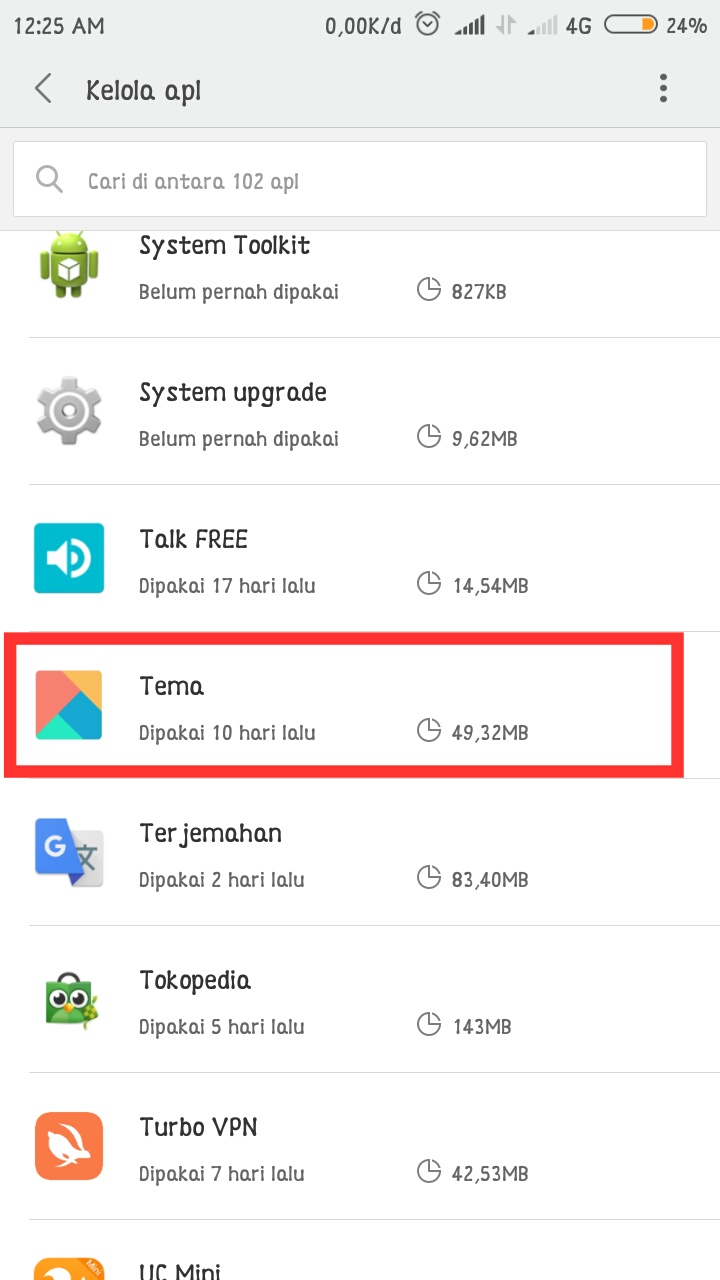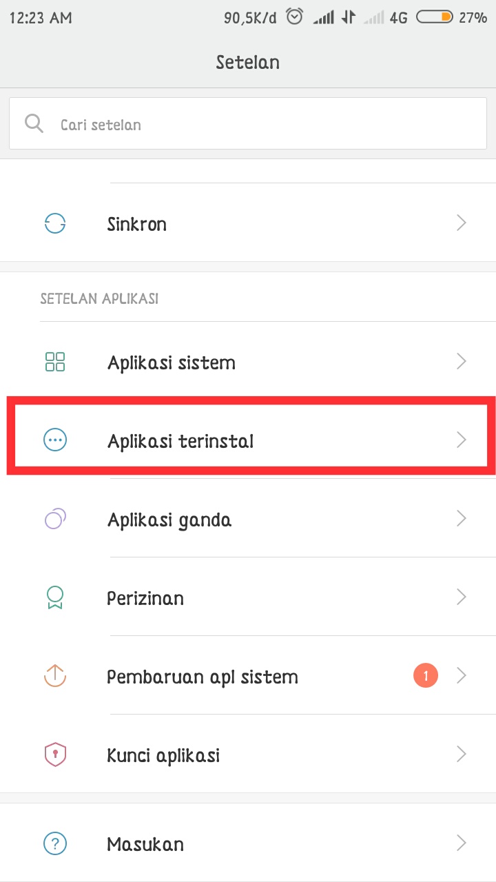 4. Jika sudah mengubah lokasi, masuk kembali pada menu Pengaturan (setting) – Aplikasi terinstall (installed app).