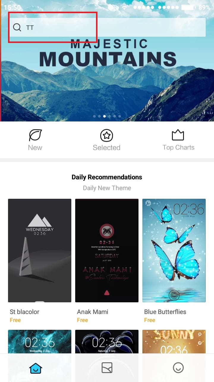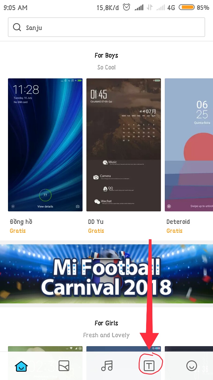 1. Buka aplikasi theme bawaan xiomi – pada halaman awal di kolom pencarian (search) masukkan keyword “Aafont”
