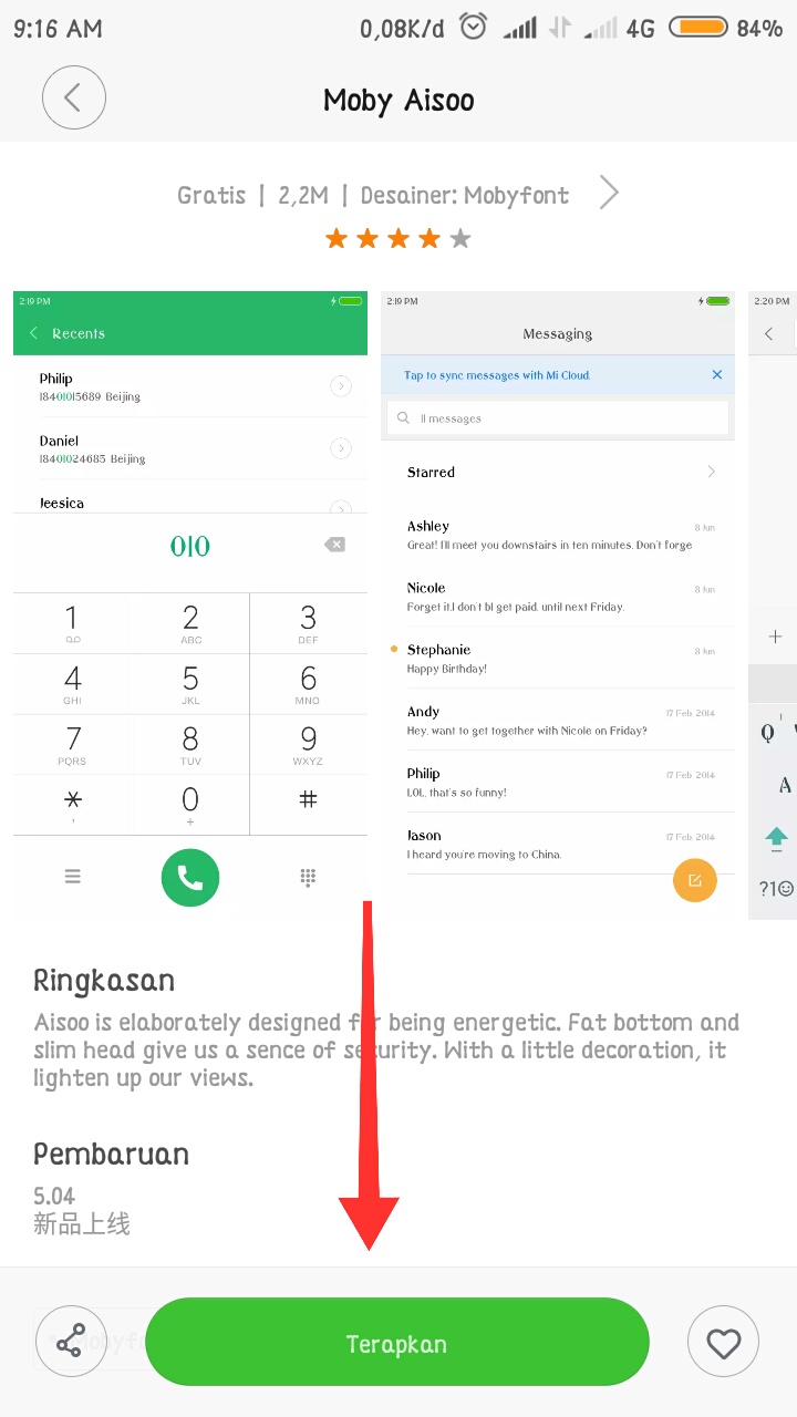 8. Setelah memilih font – unduh font yang dipilih – tunggu hingga download selesai dan Terapkan font. Kemudian anda akan disuruh untuk memulai ulang smartphone anda.