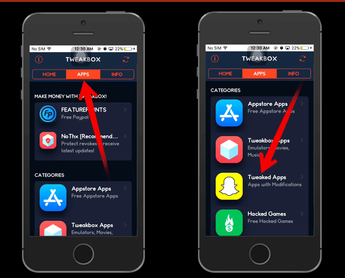 3. Buka aplikasi “Tweakbox” – pilih “APPS” – pilih “Tweaked Apps”.