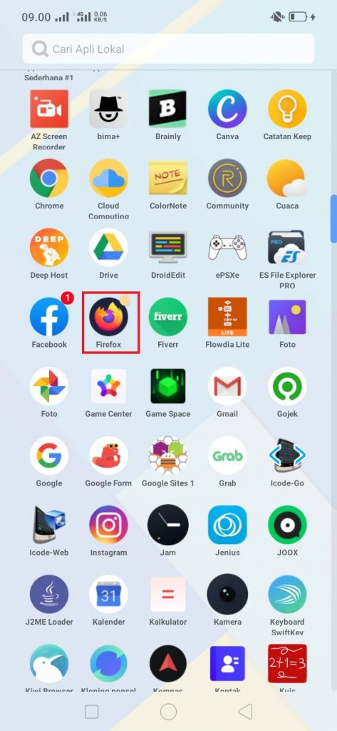 2. Buka aplikasi Mozilla Firefox. Apabila kamu belum memasang aplikasi Mozilla Firefox di Android kamu, kamu bisa memasang aplikasi Mozilla Firefox di Play Store.