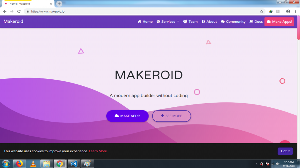 Makeroid adalah tools yang menyerupai App Inventor dengan memiliki banyak fitur yang bisa kamu pakai dalam pembuatan program aplikasi Android. Kamu ingin menciptakan aplikasi Android melalui tools ini, maka kamu harus login baik secara langsung, maupun melalui Gmail Oauth. Tools ini merupakan satu-satunya yang ada fasilitas Store dan Code Builder. Kedua ini memiliki kegunaan masing-masing. Apabila kamu ingin membuat extension sendiri, maka kamu pilih Code Builder. Apabila kamu ingin melihat aplikasi yang ada di dalam Makeroid, maka kamu pilih Store.