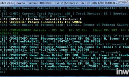 Setelah beberapa hari yang lalu Niantic memperbarui API (Application Programming Interface) Pokemon Go yang membuat semua tools bot tidak berfungsi, nah sekarang akhirnya sudah bisa...