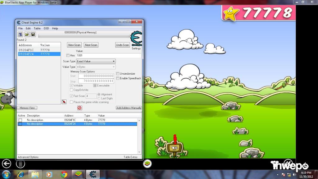 Ā 4. Masuk kembali ke game diBluestack lalu ubah value, misal uang untuk dicari pake Cheat engine seperti biasanya.